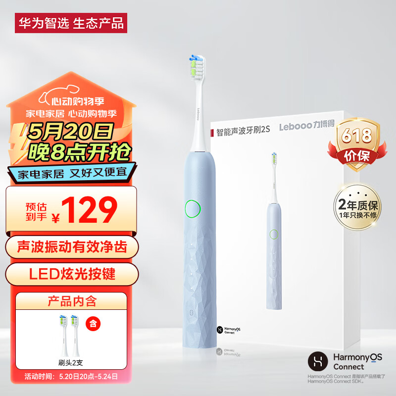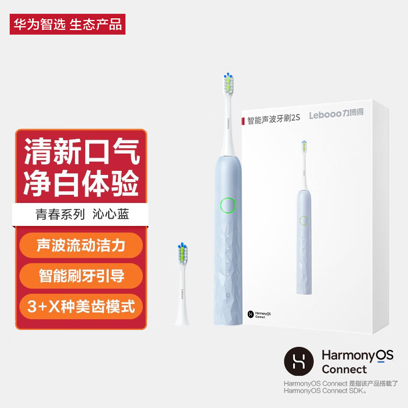 华为智选力博得电动牙刷 智能声波牙刷 送男友送女友牙刷礼物 青春款2S 沁心蓝(支持鸿蒙智联)价格:129.00元!