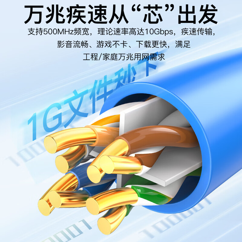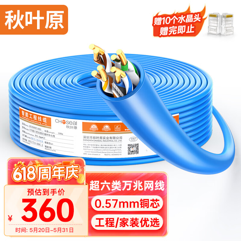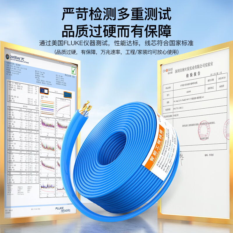 秋叶原(CHOSEAL)原装超六类非屏蔽网线 CAT6A类万兆高速 纯铜线芯 工程家装网络箱线 蓝色100米 QS2668BT100S价格:379.00元!