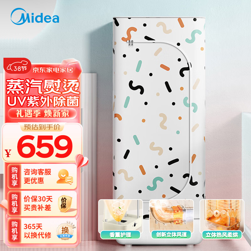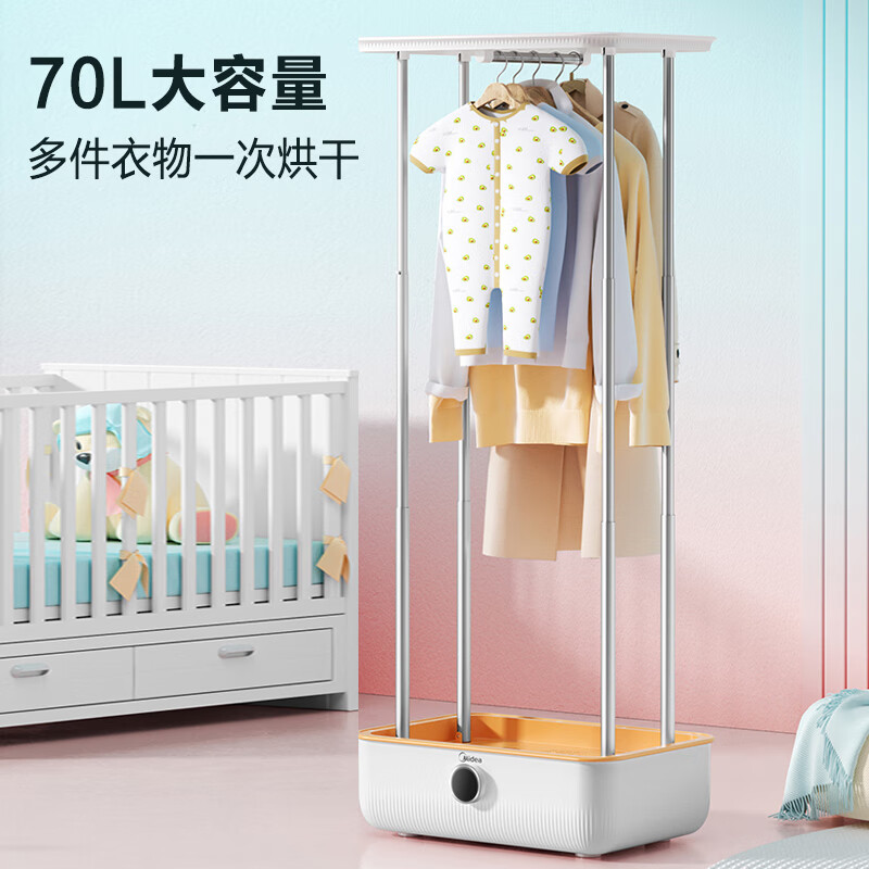 美的(Midea)烘干机全自动家用干衣机 涡轮蒸汽除皱护理机 一键操作折叠式紫外线杀菌衣物护理机MHJ70-02VQL价格:699.00元!