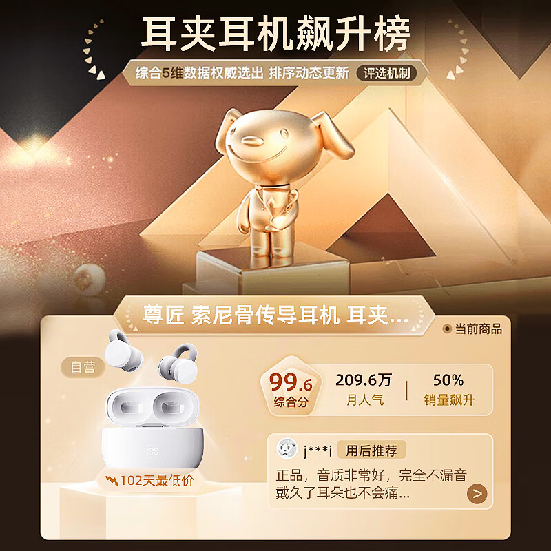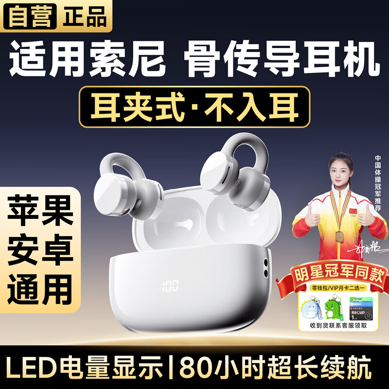 尊匠蓝牙耳机适用索尼骨传导概念耳夹式不入耳开放式真无线夹耳式运动跑步外卖通话降噪超长续航苹果 数显顶配【舒适久戴不痛】价格:238.00元!