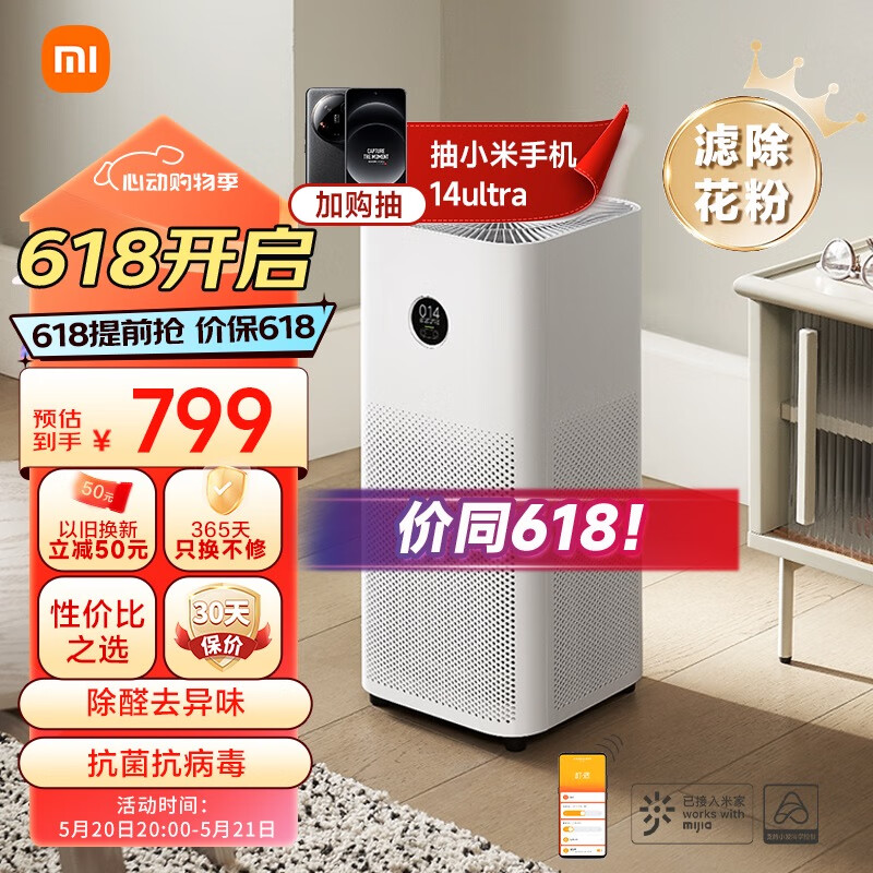 米家 小米空气净化器4 除甲醛除菌除异味 家用 除雾霾PM2.5 低噪设计 米家APP互联 AC-M16-SC价格:799.00元!