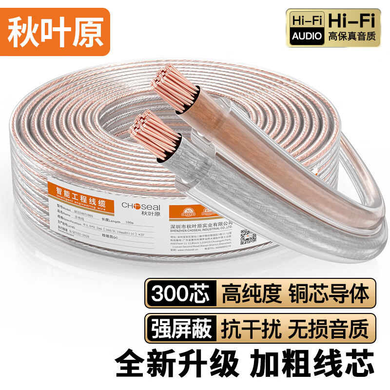 秋叶原(CHOSEAL)发烧级纯铜音响线 2*300芯 增强型屏蔽抗干扰 功放音箱音频喇叭连接线 100米 QS2246T100S价格:859.00元!