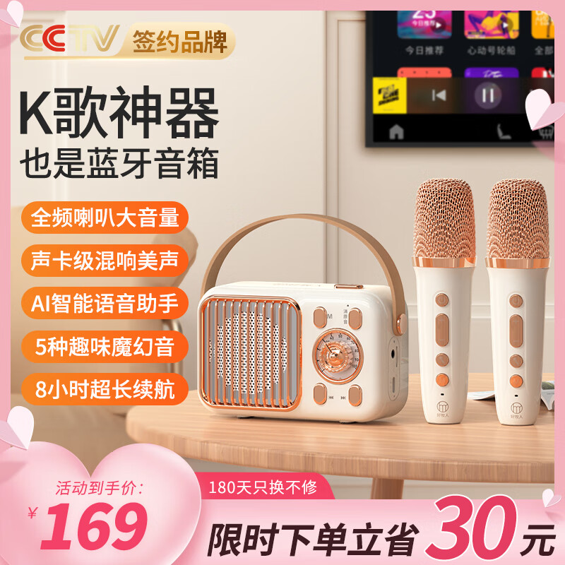好牧人无线蓝牙音箱k歌麦克风音响一体自带声卡儿童话筒礼物家用电视卡拉ok家庭ktv音响套装户外唱歌神器价格:199.00元!