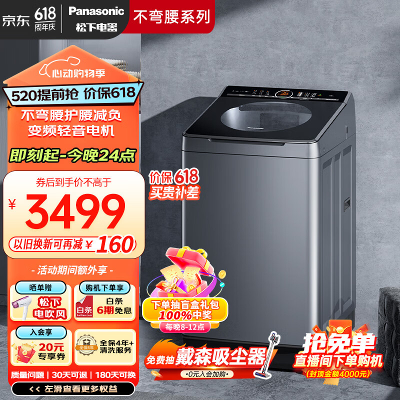 松下(Panasonic)波轮洗衣机全自动 节能变频直驱 离心洗护衣 户外服洗 10公斤大容量 不弯腰XQB100-UAJUD【大U】价格:3799.00元!