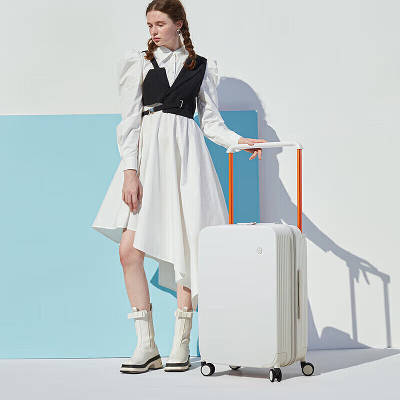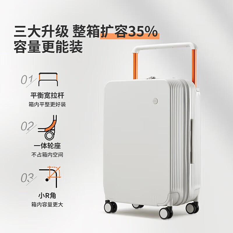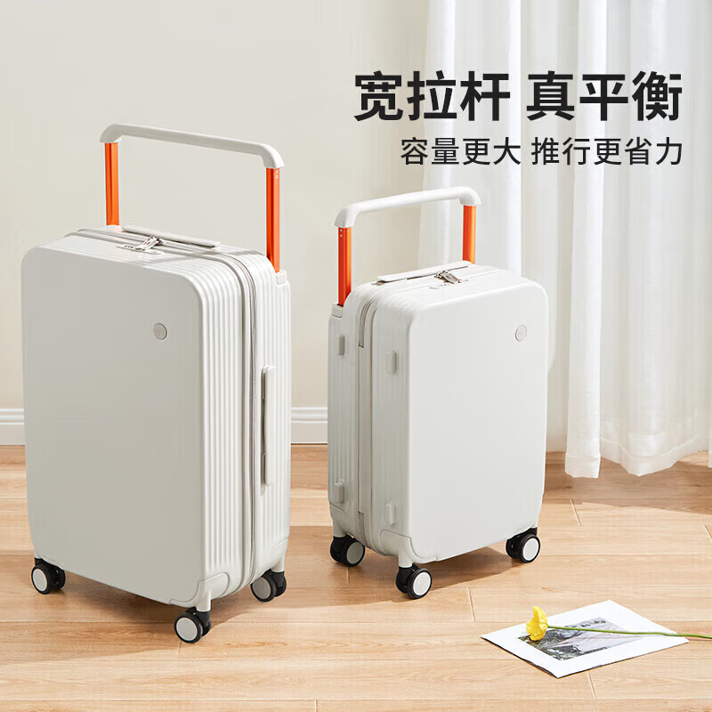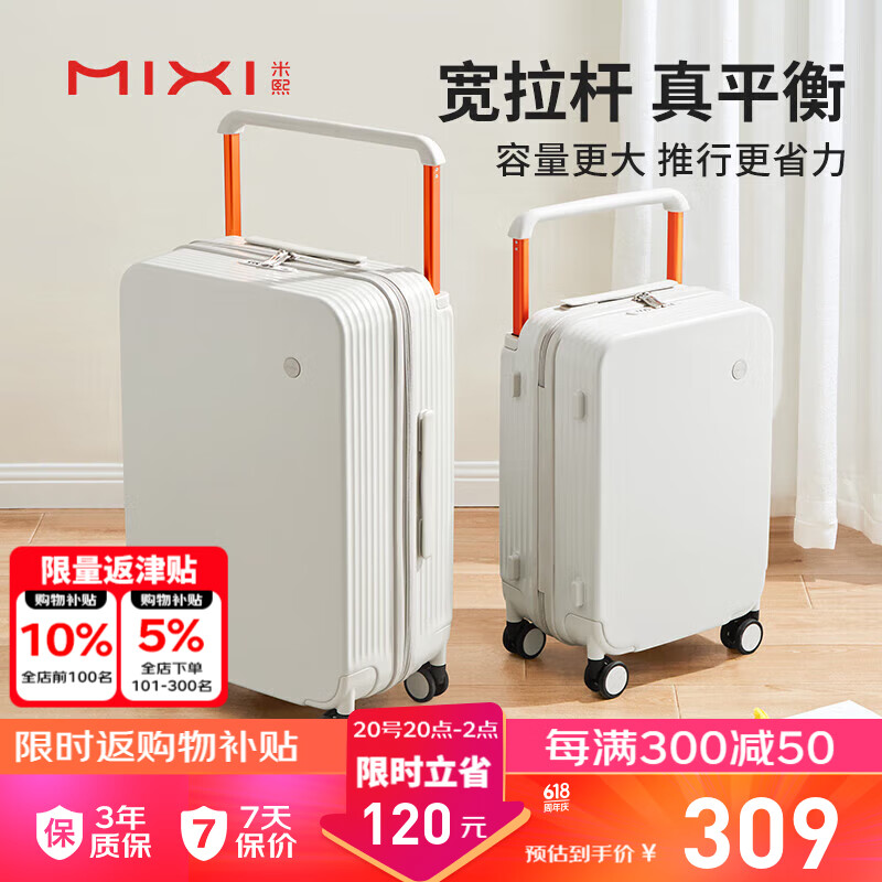 米熙高颜值宽拉杆登机箱20英寸行李箱大容量旅行箱子男密码箱女烟白82价格:429.00元!