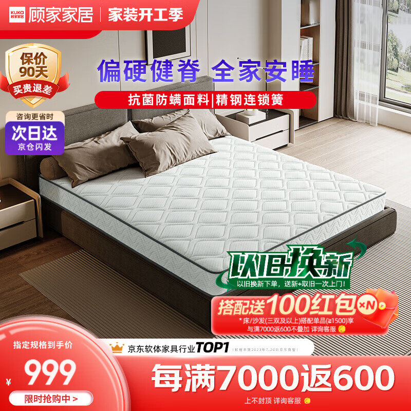 顾家家居(KUKA)抑菌防螨精钢连锁簧席梦思弹簧床垫1.8*2米M0085A【京仓闪发】价格:949.00元!