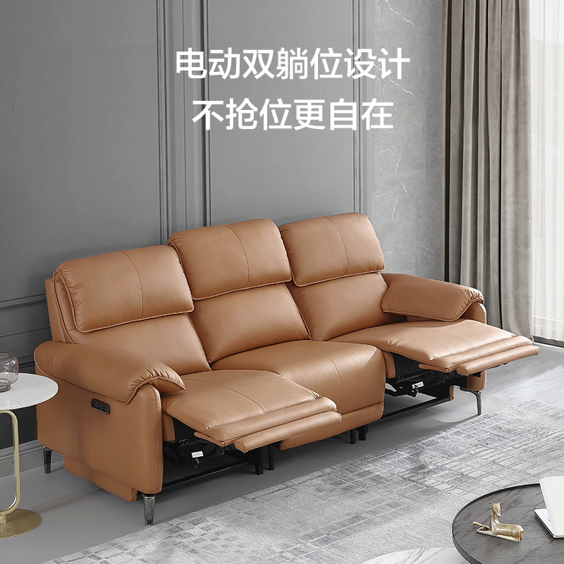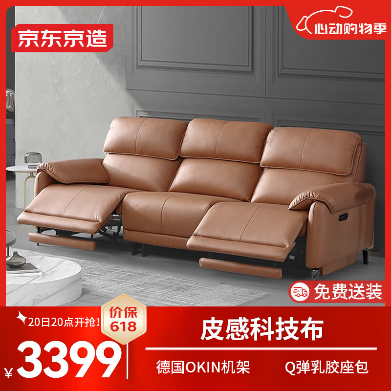京东京造布艺沙发 皮感科技布|德国OKIN机架|双电动 客厅大户型2.7m橙SE06价格:3899.00元!