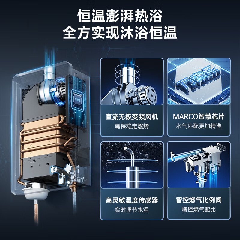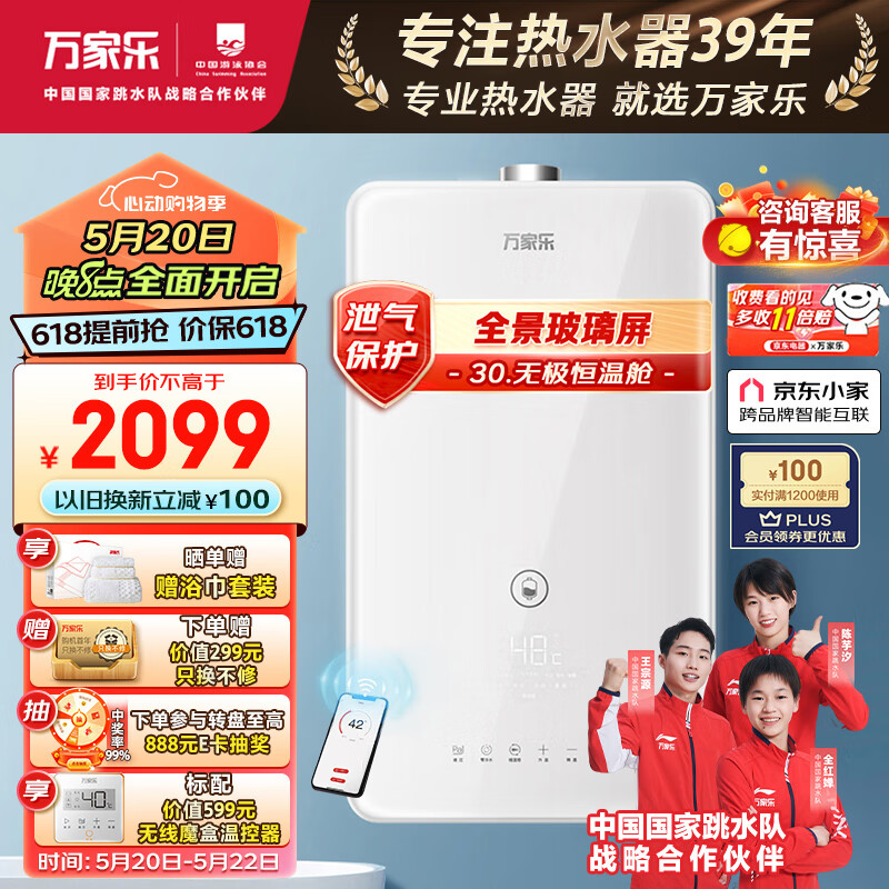 万家乐 18升防冻燃气热水器天然气无级恒温舱增压零冷水CO甲烷双安防京东小家智能三重净浴JSQ34-18RL5价格:2998.00元!