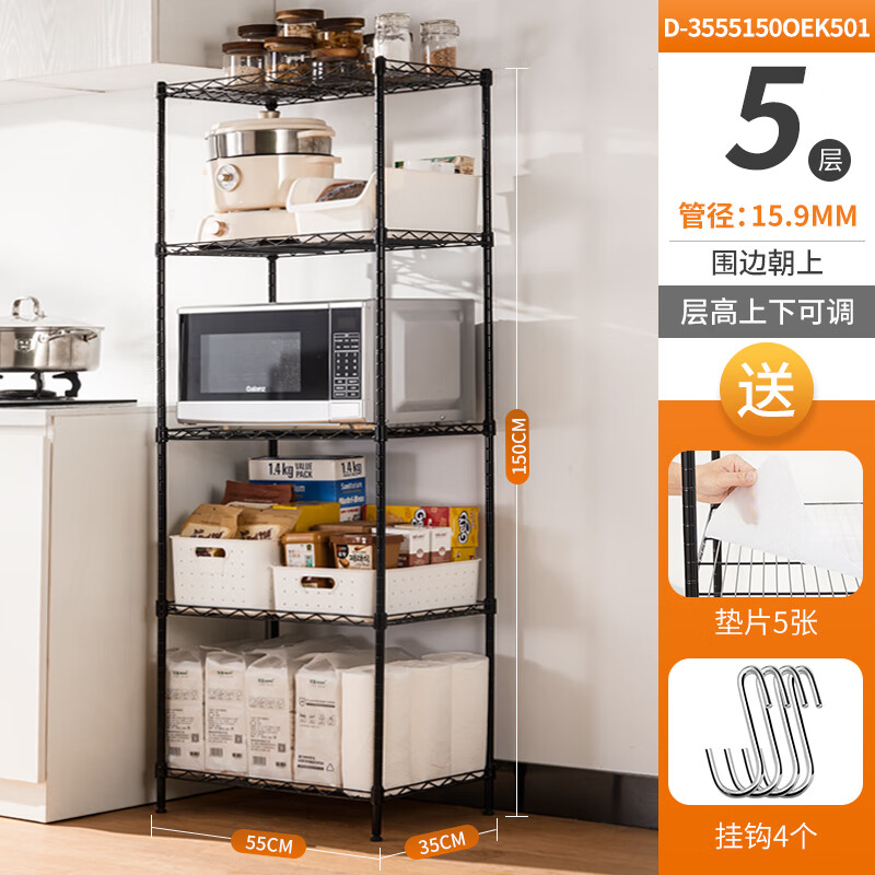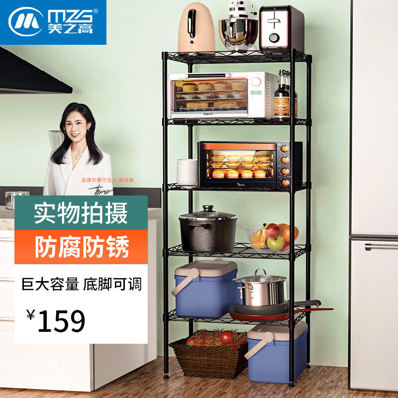 美之高 厨房置物架落地多层储物架仓储金属货架五层杂物收纳架子价格:159.00元!