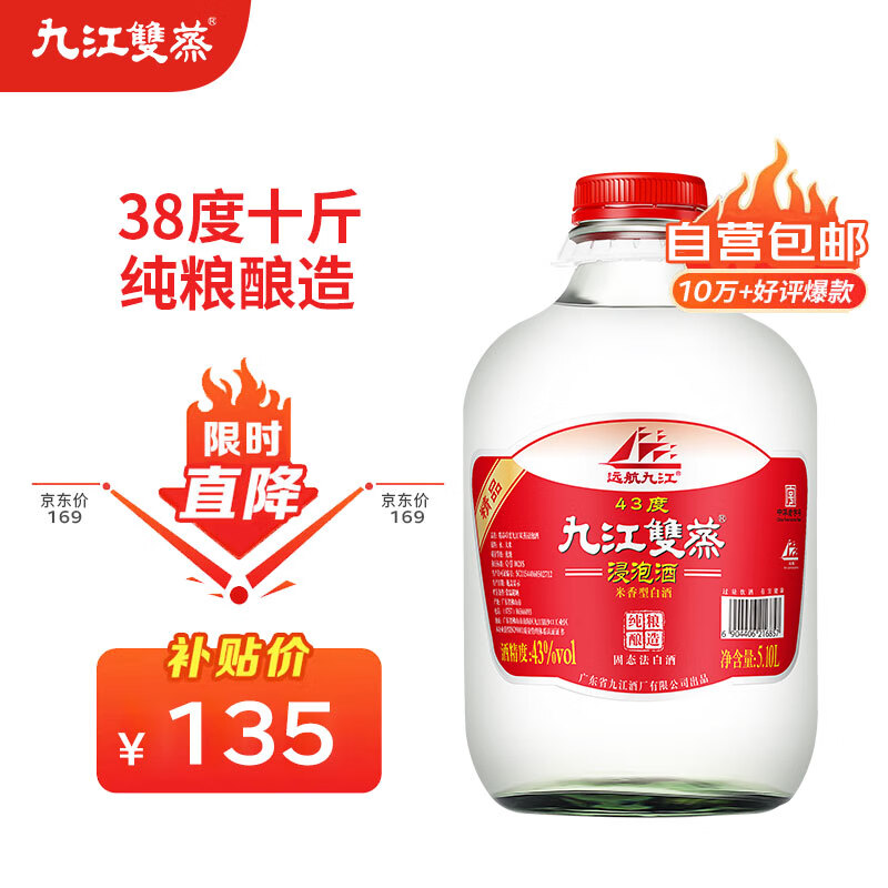九江双蒸 米香型白酒 43度浸泡酒5.1L 米酒浸泡青梅药材养生酒送礼白酒价格:135.00元!