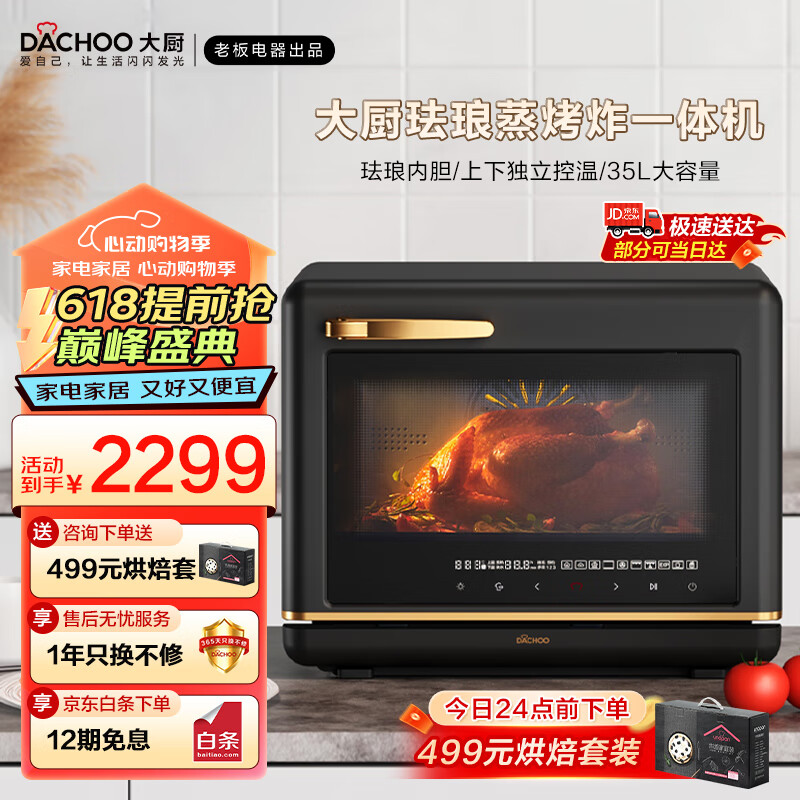 大厨蒸烤炸一体机台式蒸烤箱家用厨房一体机DB610珐琅内胆专业烘焙电烤箱老板电器出品价格:2399.00元!