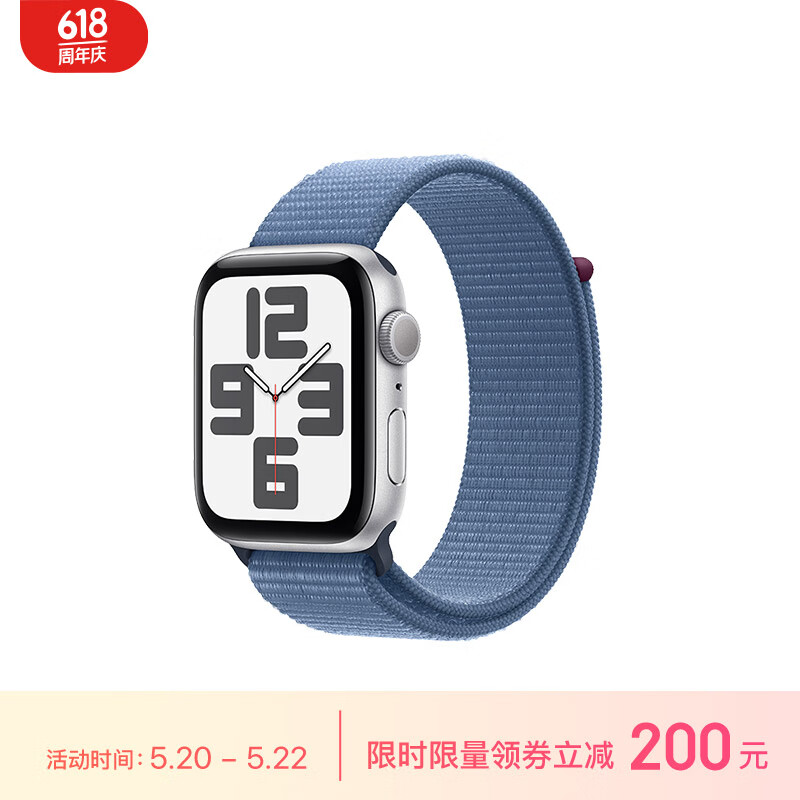 Apple/苹果 Watch SE 2023款智能手表GPS款44毫米银色铝金属表壳凛蓝色回环式运动型表带 MREF3CH/A价格:2199.00元!
