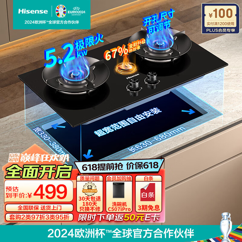 海信(Hisense)天然气燃气灶 家用嵌入式双灶家用打火灶具 5.2kW底座可调节燃气灶天然气以旧换新 JZT-DB32价格:549.00元!