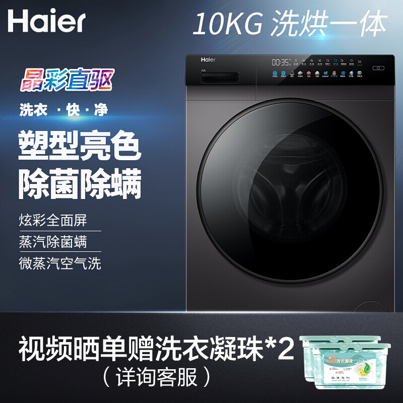 海尔(Haier)滚筒洗衣机全自动 10公斤洗烘一体机 智能投放 全触控晶彩屏 直驱变频电机 以旧换新EG100HBDC8SU1