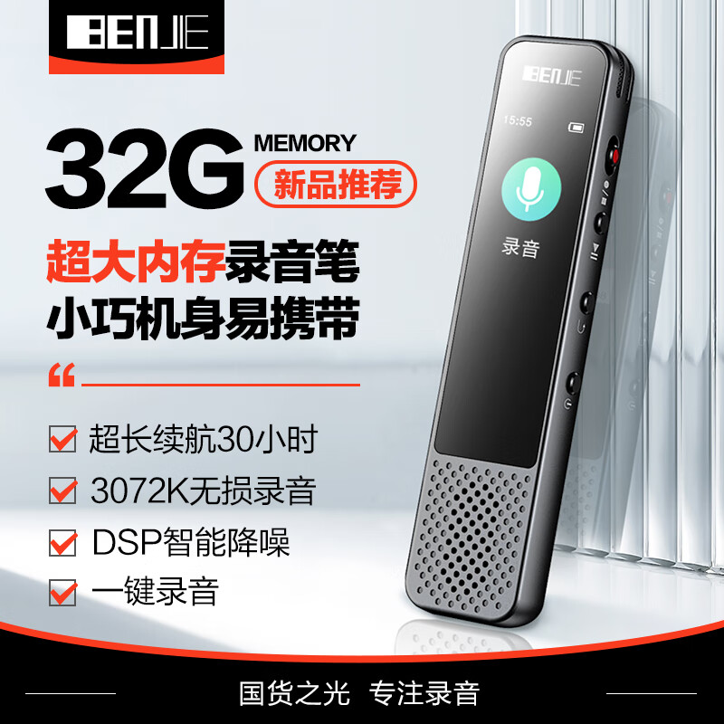 炳捷(BENJIE)G6 32G录音笔专业高清降噪随身学生上课用会议转文字神器录音设备价格:89.00元!
