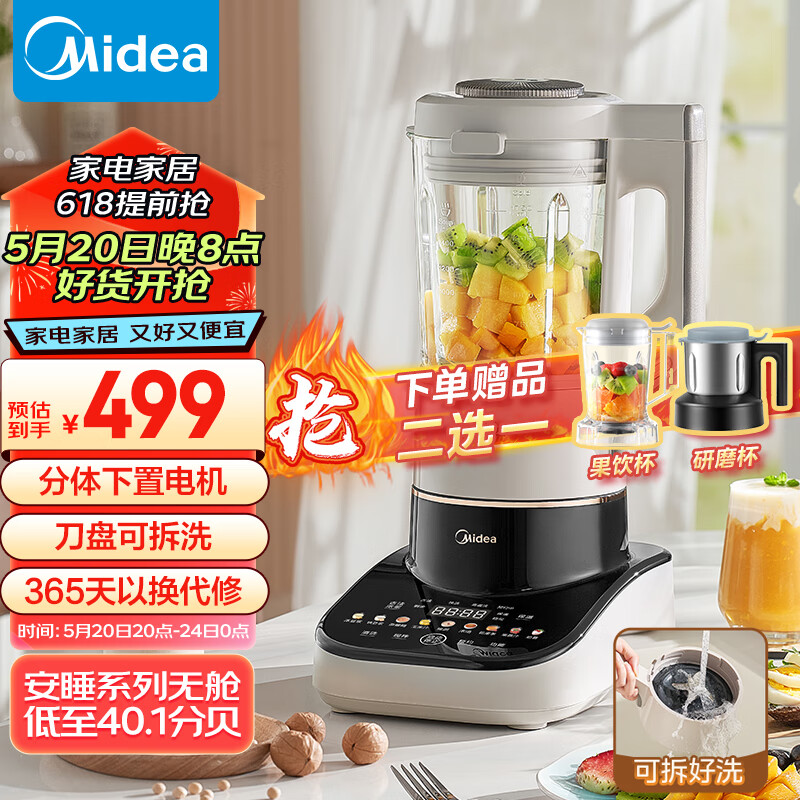 美的(Midea)安睡Max2低音降噪破壁机1.75L大容量家用豆浆机可拆洗榨汁机 全自动加热早餐机辅食机MJ-PB13S59价格:499.00元!