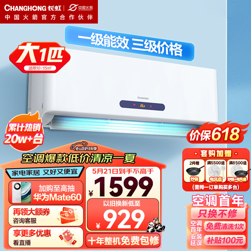 长虹(CHANGHONG)大1匹新一级能效变频冷暖省电京小宅 智能卧室空调挂机 京东小家 KFR-26GW/ZDHQW1+R1以旧换新价格:1649.00元!