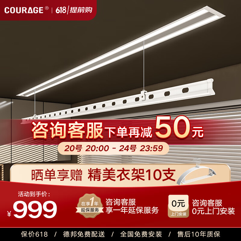 卡瑞琪(COURAGE)电动晾衣架隐形阳台家用隐藏式晾衣架多功能升降晒衣架 米家2.7米价格:2149.00元!