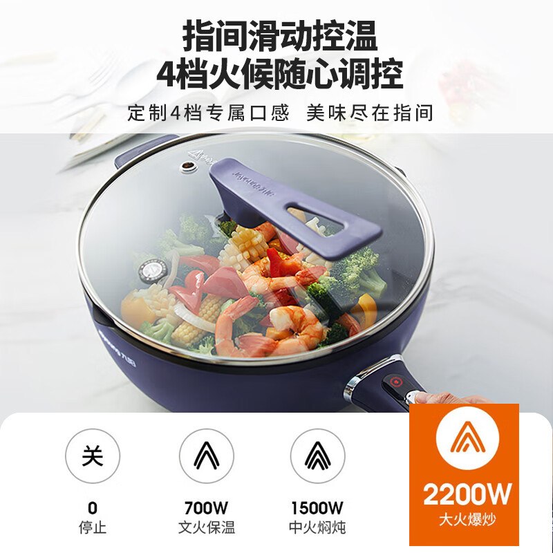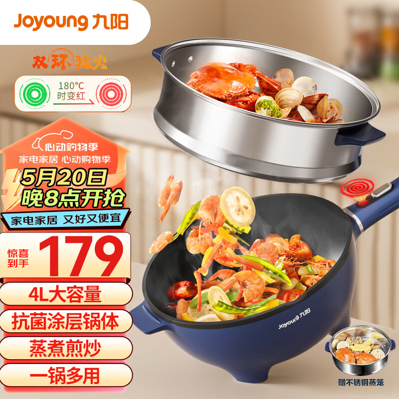 九阳(Joyoung)2200W电炒锅电煮锅电火锅电蒸锅家用电锅多功能蒸煮 一体 4L大容量炒菜锅多用途配蒸笼GC50S价格:179.00元!