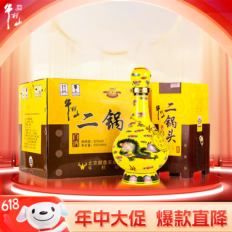 牛栏山 经典二锅头黄龙 清香型白酒 52度 500ml 单瓶装价格:441.00元!