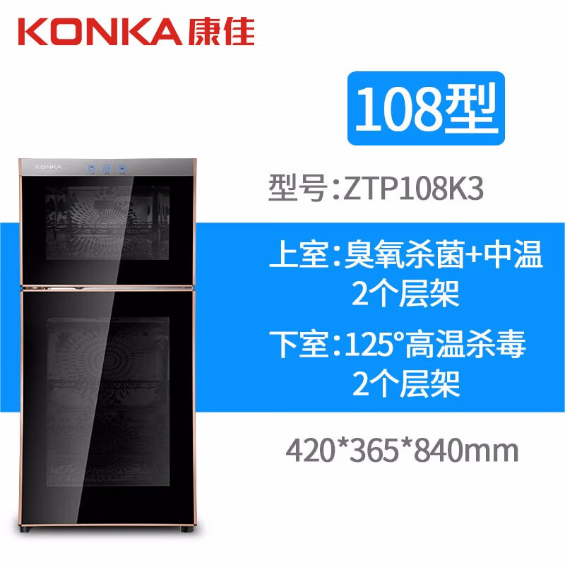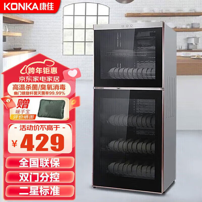 康佳(KONKA)消毒柜家用立式高温消毒碗柜商用厨房大容量双门碗筷高温消毒碗柜二星标准双门分控消毒机 108型双门(上2层下2层)价格:429.00元!