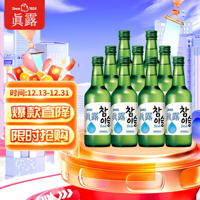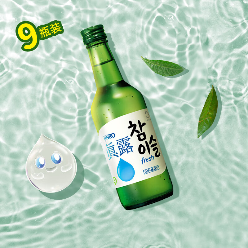 真露烧酒16.5°竹炭酒 360ml*9瓶装 年货送礼价格:99.90元!