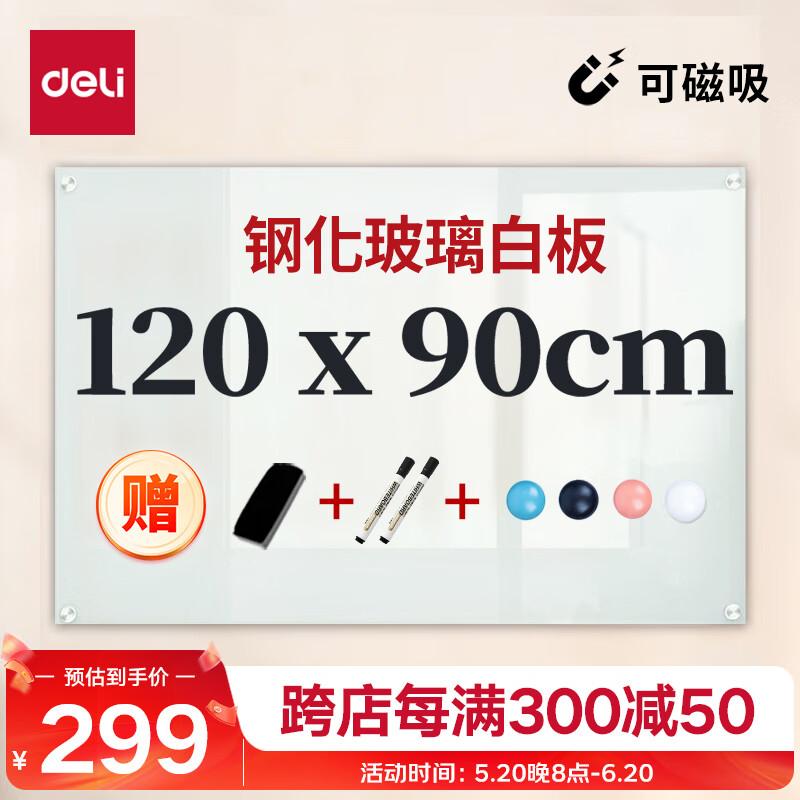 得力(deli)挂式白板120*90cm磁性钢化玻璃白板 抗划书写顺畅会议写字板黑板8736价格:349.00元!
