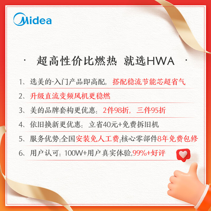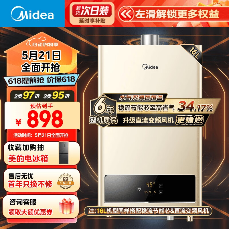 美的(Midea)16升燃气热水器 天然气 智能恒温 水气双调 低水压启动 多重安防 大屏显示 JSQ30-HWA价格:898.00元!