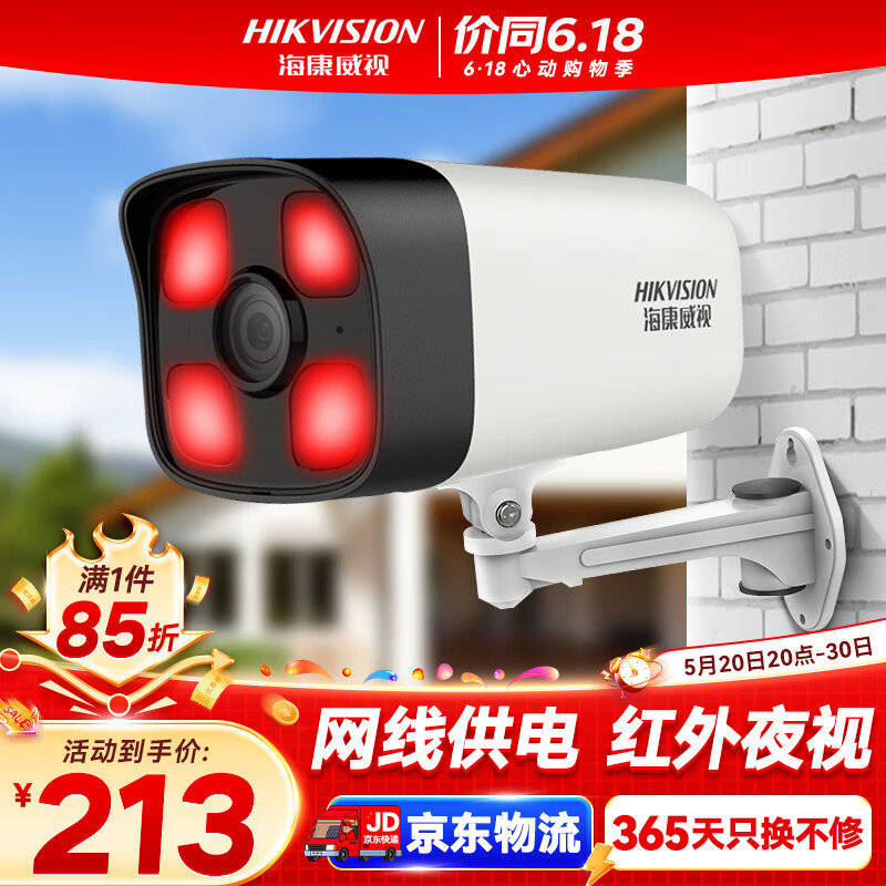 HIKVISION海康威视监控器家用200万室内外监控摄像机红外夜视可录音手机远程 B12HV3-IA 6MM价格:251.00元!