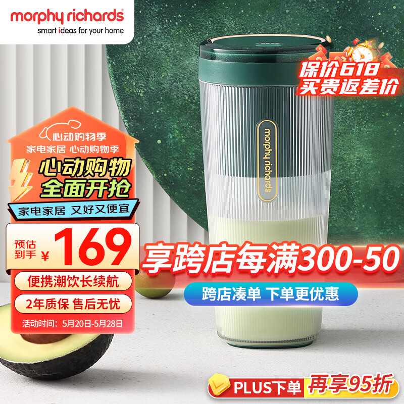 摩飞电器(Morphyrichards)榨汁机 便携式榨汁杯 网红无线充电果汁机 料理机迷你随行杯 MR9800 翡冷绿价格:169.00元!