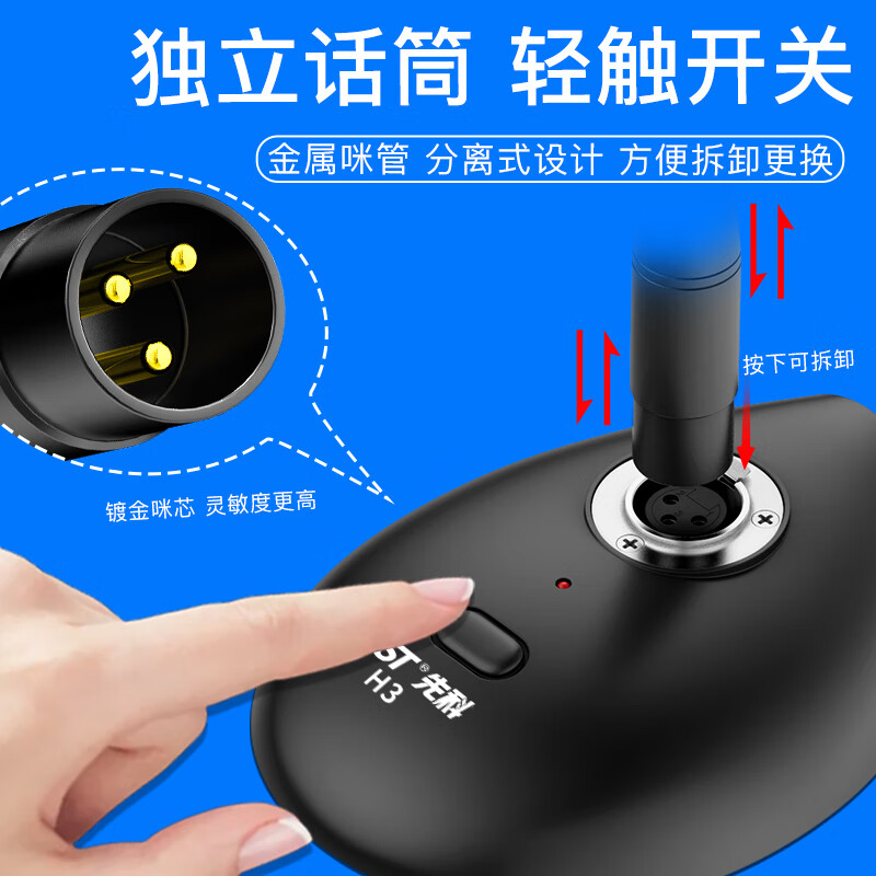 先科H3电脑麦克风电容麦会议广播话筒台式有线鹅颈式培训电脑调音台桌面网课聊天游戏语音双卡龙头价格:218.00元!
