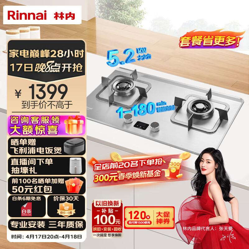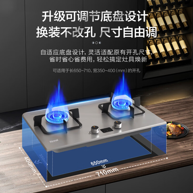 林内(Rinnai)【哪吒系列】家用嵌入式天燃气灶 台嵌两用可调节底盘 5.2kW双眼猛火定时灶 不锈钢 JZT-2E08MTX价格:1399.00元!