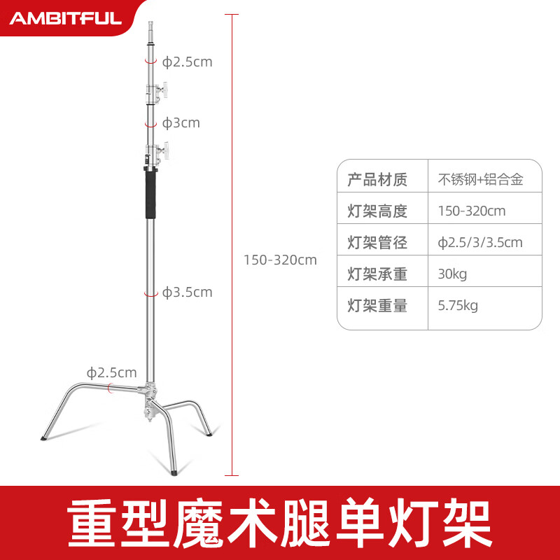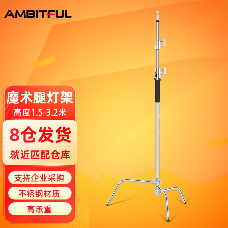 AMBITFUL摄影魔术腿灯架3.2m斜臂支架顶灯架专业影棚器材大承重灯架适用闪光灯摄影灯常亮直播灯价格:268.00元!