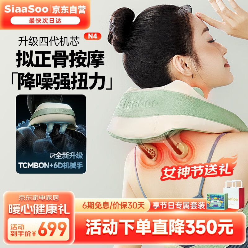 象术(SIAASOO)颈椎按摩器颈部按摩仪颈椎按摩仪肩颈按摩器颈部腰部按摩披肩斜方肌 父母男女朋友38节女神节礼物 N4按摩披肩【浅岛绿】价格:1049.00元!
