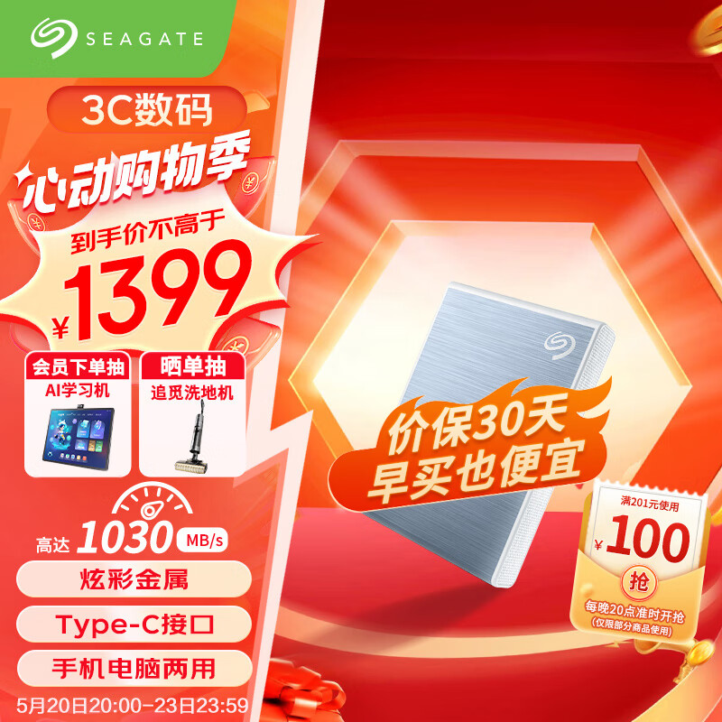 希捷(SEAGATE)移动固态硬盘2TB PSSD NVMe 小铭 type-C USB3.2 蓝色 迷你小型 手机直连 数据恢复服务价格:1399.00元!