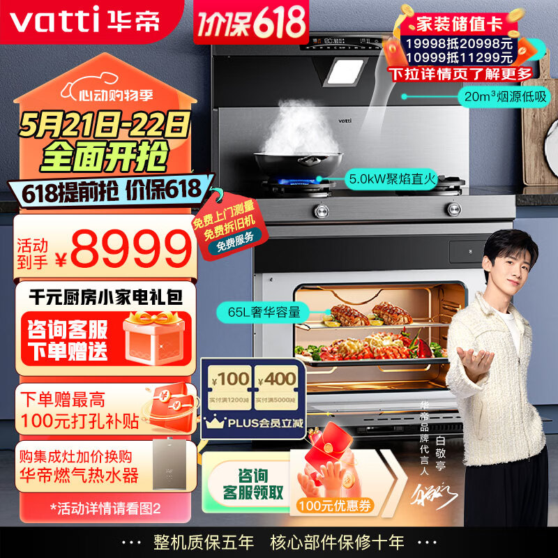 华帝(VATTI)集成灶蒸烤一体 集成灶一体式 蒸烤箱一体机 模块化设计 家用蒸烤箱燃气灶i3028Y天然气价格:9899.00元!
