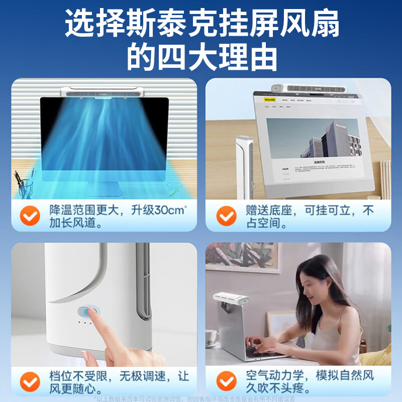 斯泰克 【挂立两用】挂屏风扇办公室小风扇usb充电桌面循环风扇宿舍电脑屏幕显示屏降温神器台式无叶夹扇价格:179.00元!
