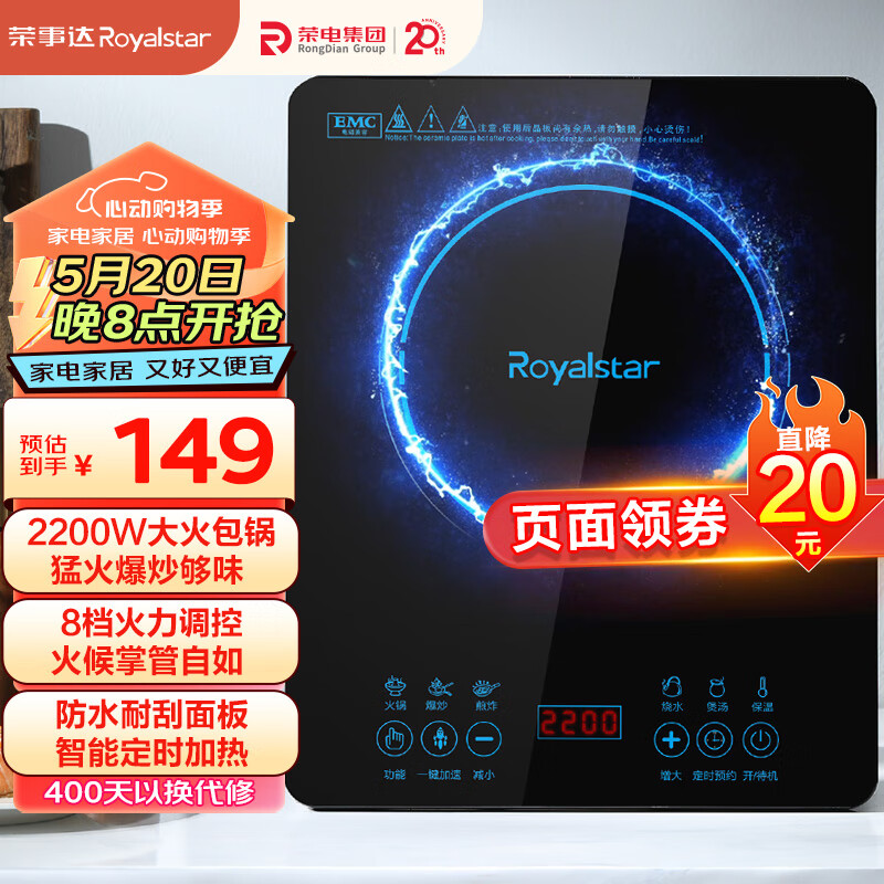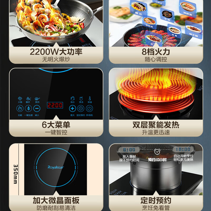 荣事达(Royalstar)电磁炉炒锅家用触控按键一体式2200W大功率一键爆炒耐用面板电磁炉C22-TD01价格:169.00元!