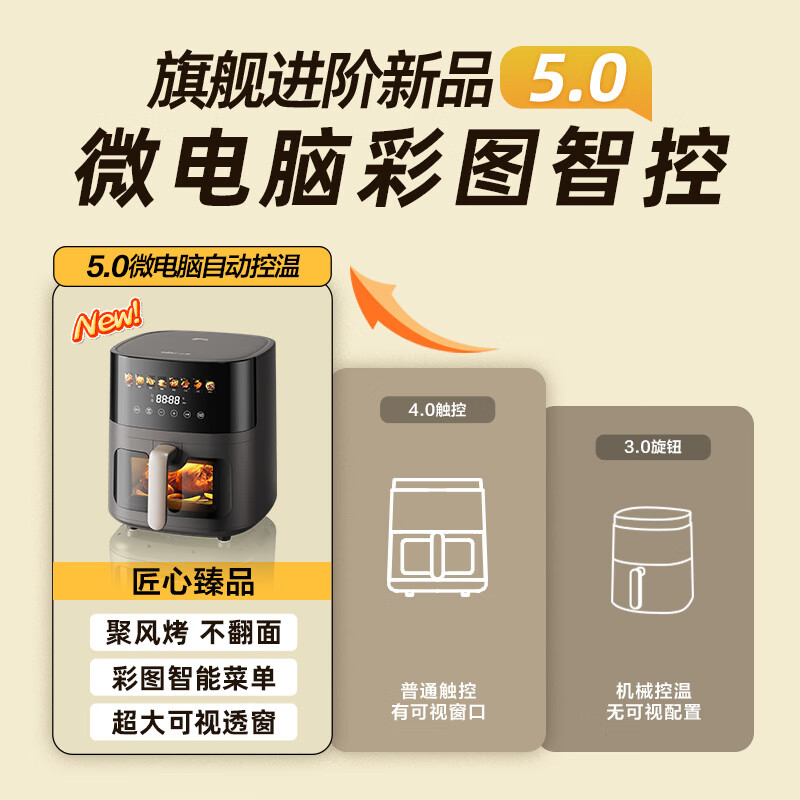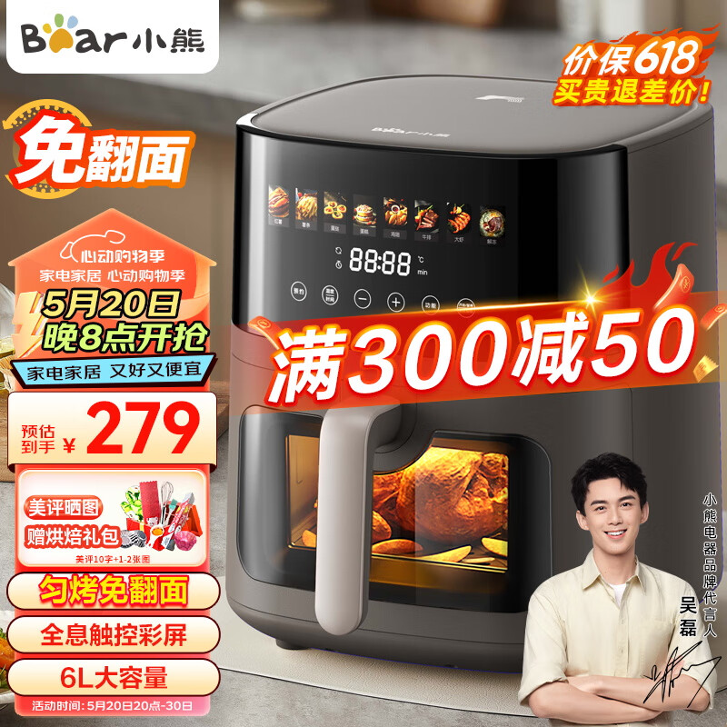 小熊(Bear)空气炸锅 不用翻面 全自动 6L大容量 可视 烤炸一体机 微电脑智能触控 蒸汽嫩炸 免翻面QZG-P16J6价格:279.00元!