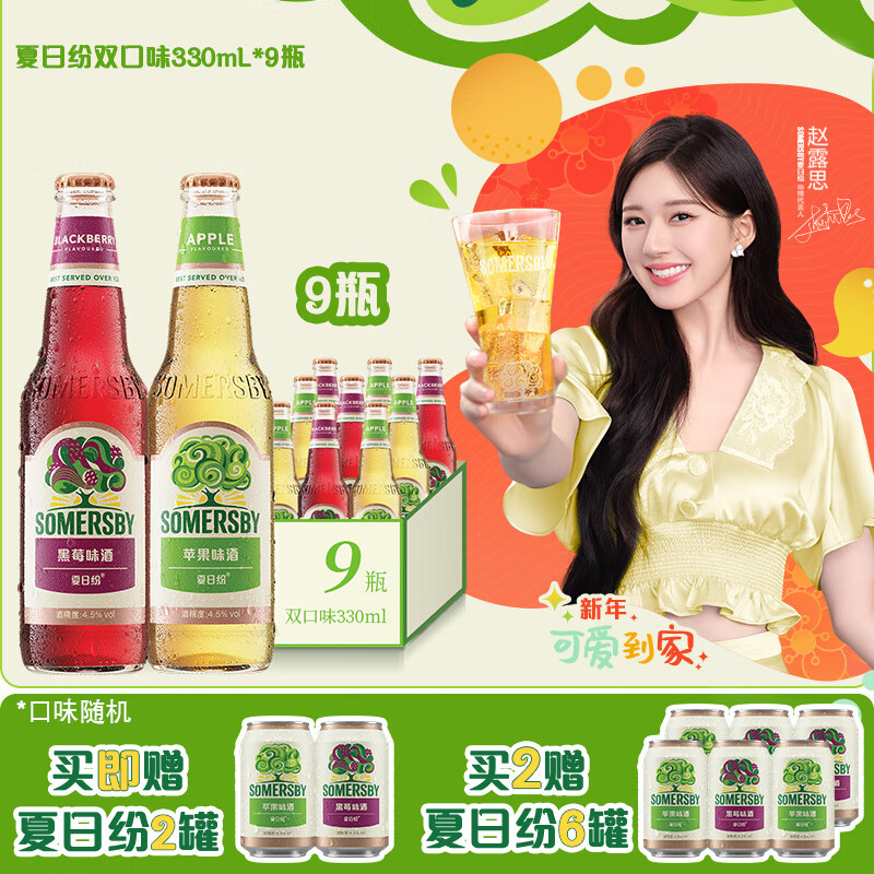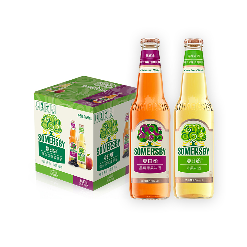 夏日纷Somersby双口味果味酒(苹果6瓶+黑莓3瓶)330ml*9瓶 年货送礼价格:79.00元!