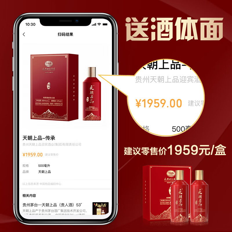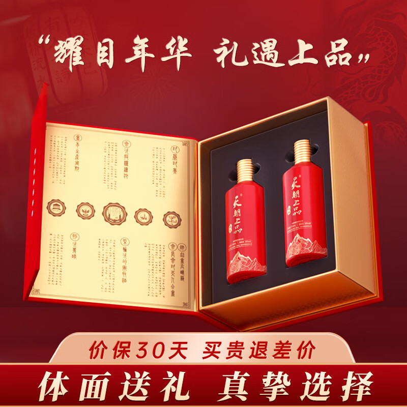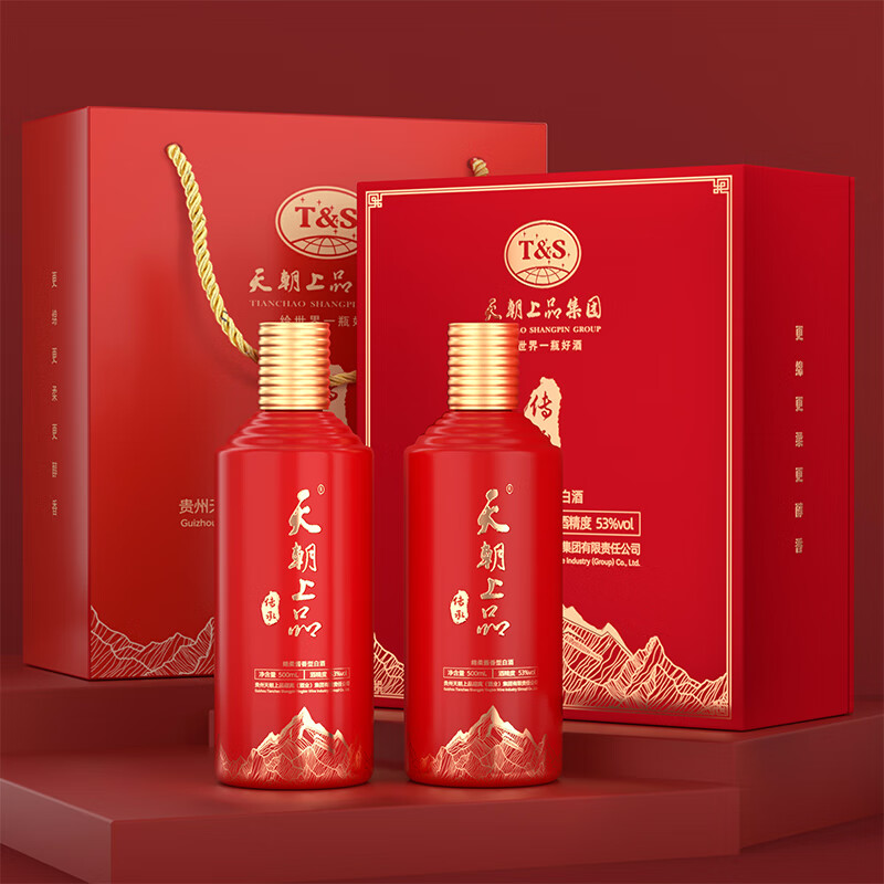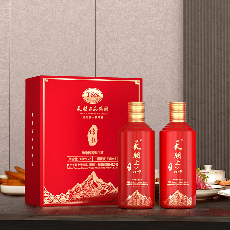 天朝上品传承礼盒 绵柔酱香型白酒 53度500ml*2瓶礼盒装 送礼精选价格:149.00元!