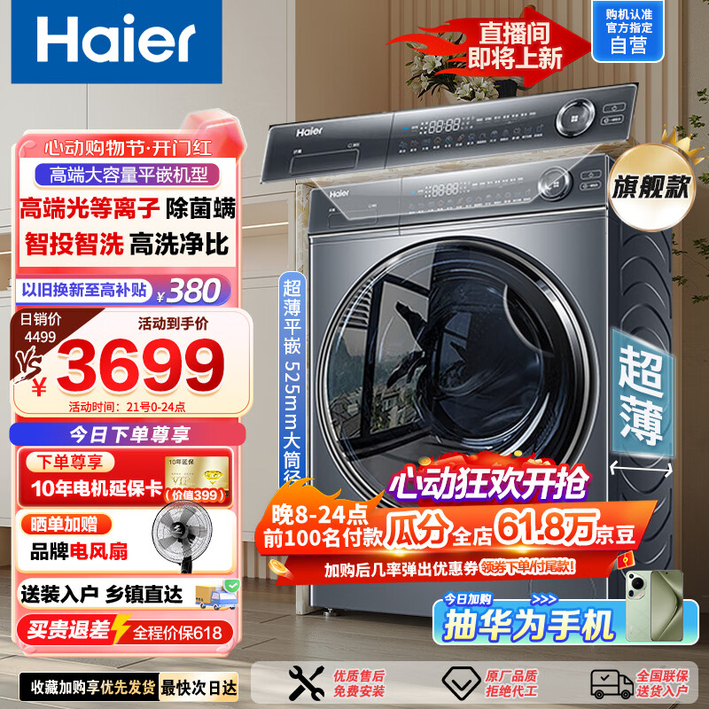 海尔(Haier)直驱精华洗云溪376滚筒洗衣机全自动10公斤大容量超薄智能投放以旧换新XQG100-BD14376LU1价格:3699.00元!