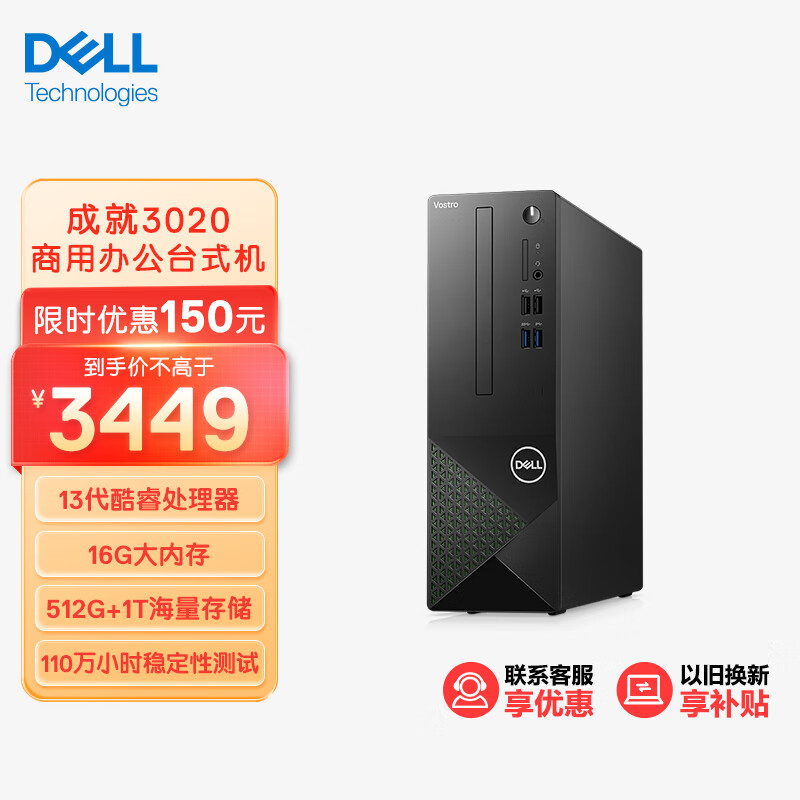 戴尔(Dell)成就3020 台式电脑主机 高性能整机 (13代i5-13400 16G 512GSSD+1TB三年上门)单主机价格:3449.00元!