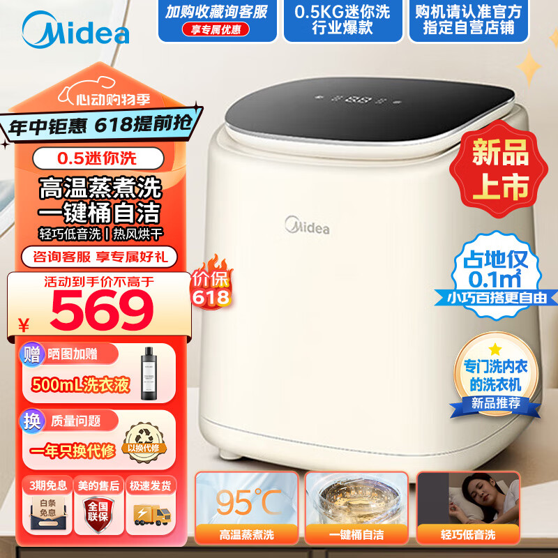 美的(Midea)0.5公斤内衣洗衣机家用迷你洗衣机95℃高温煮洗除菌除螨袜子神器静音全自动洗脱一体机MNB5VCAW0E价格:569.00元!