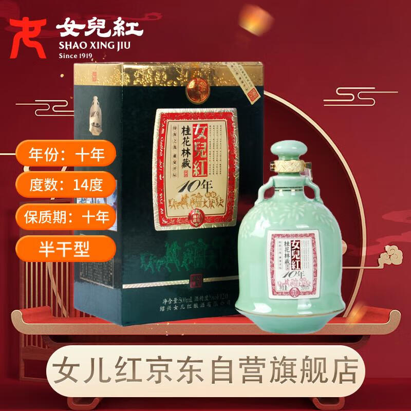 女兒红桂花林藏十年 半干型 绍兴黄酒 500ml 礼盒装 传统型礼盒价格:88.00元!