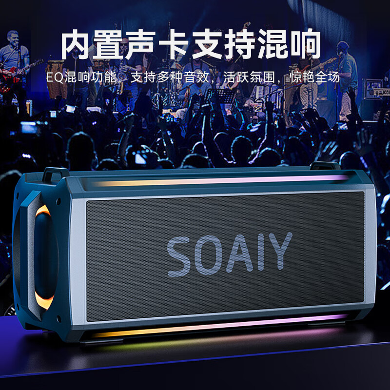 索爱(soaiy)SH05户外K歌5.1蓝牙音箱声卡音响一体机四喇叭双振膜立体声重低音炮混响广场舞直播带2个麦克风价格:899.00元!