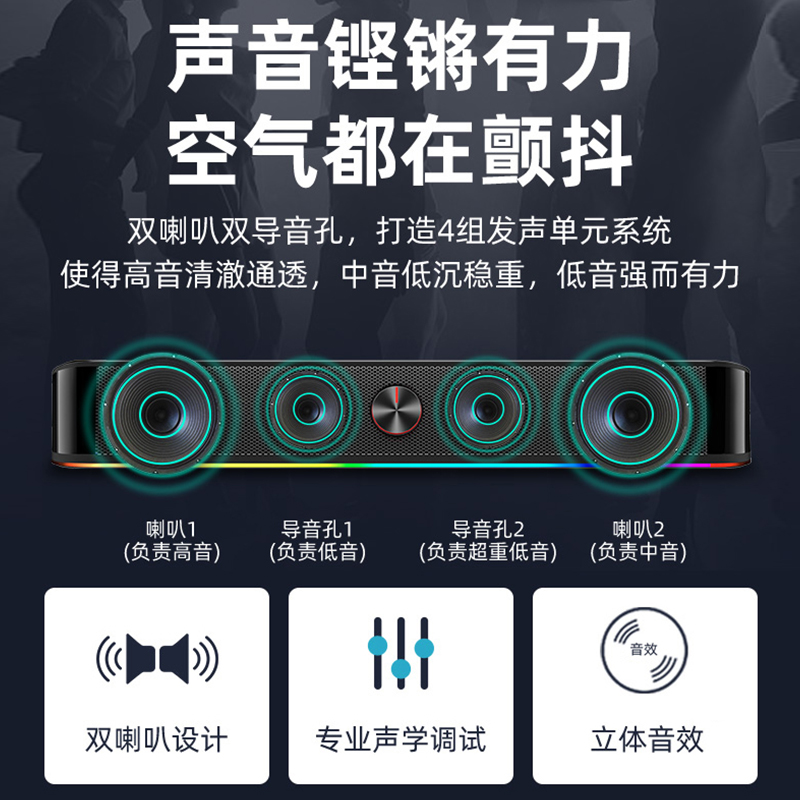 惠普(HP)DHE-6003 音响电脑迷你长条小音箱手机多媒体笔记本电脑桌面有线台式机低音炮游戏电竞炫彩灯光价格:109.00元!