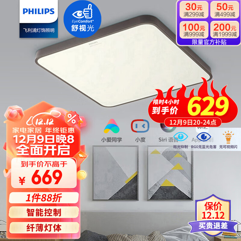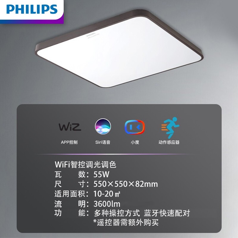 飞利浦(PHILIPS)客厅灯LED吸顶灯简约客厅 悦轩智能WiFi升级版 55W价格:759.00元!