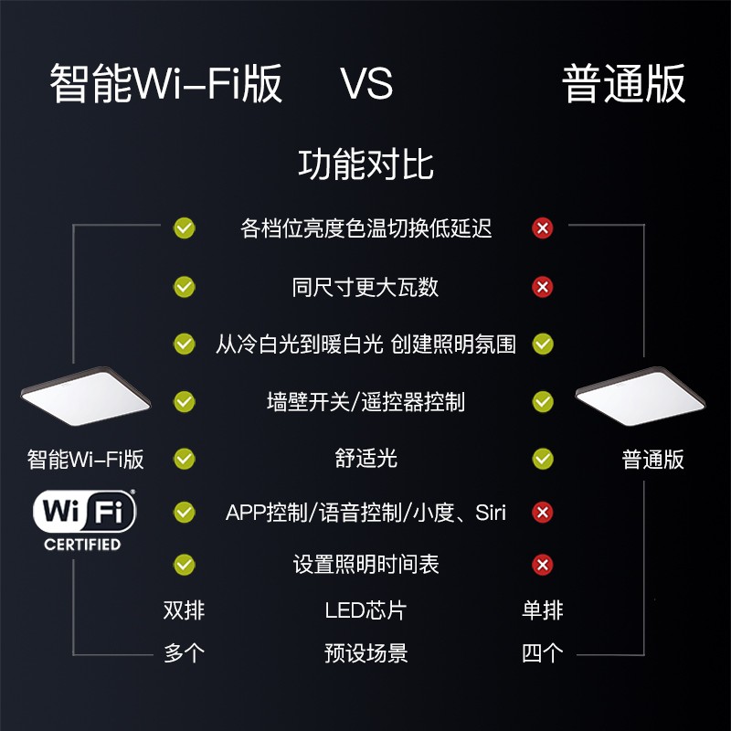智能操控功能:定时开关,色温调节,亮度调节
