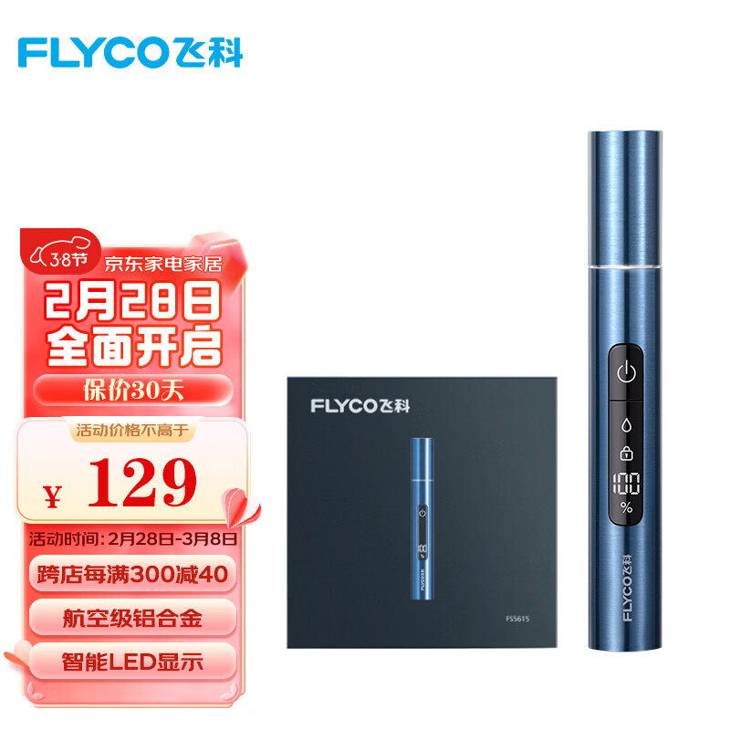 飞科(FLYCO)鼻毛修剪器电动男士剪鼻毛器女充电式剃毛刀全身水洗刮修鼻毛神器剪刀FS5615节日送男朋友礼物 FS5615星河蓝价格:129.00元!